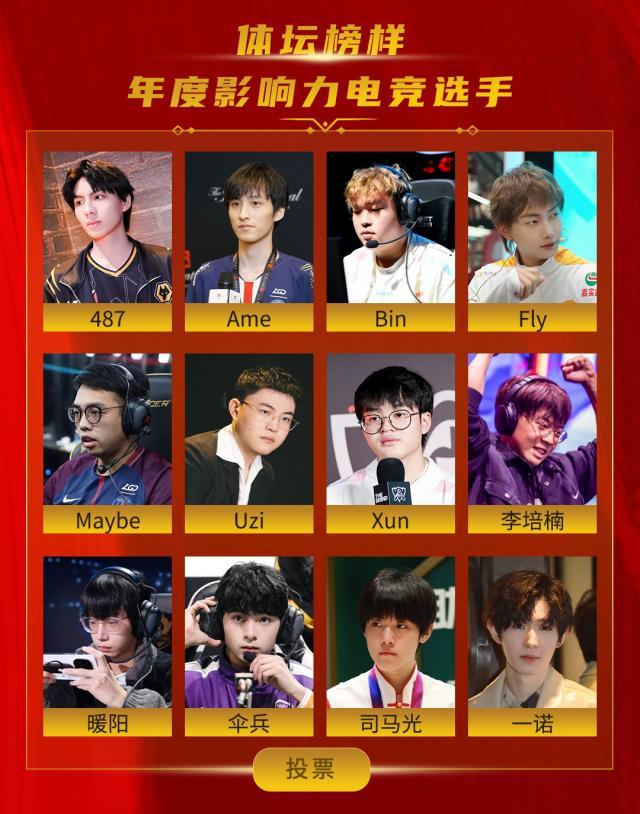 社媒类和电子竞技类由大众评委投选,每张选票的分值为1分。每个奖项得分最高者为该奖项获得者。
