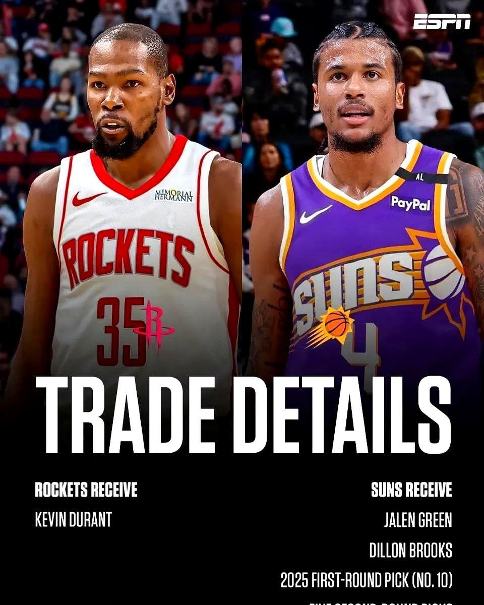 但是火箭想抢字母哥,也抢不过马刺雷霆这些球队,杜兰特又是给点身体对抗就不行了,那还不如把他送回太阳。现在KD是没有办法掌握自己交易的主动权的,因为他已经和火箭续约了,想把他送哪去就送哪去,因此能把他送回太阳,换回狄龙和格林,火箭就还有机会。