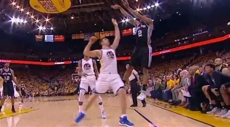 那是他拿下四届得分王的招牌绝技:以他2.8米的站立摸高,89公分的弹跳,强行跳投,没人能盖到他的远射。杜兰特的投篮划过勒布朗的指尖,命中篮筐,勇士反超。杜兰特就此一击,杀死了勒布朗和欧文全场的努力。勇士118比113取胜,3比0领先骑士。赛后被问到那个三分球时,杜兰特上气不接下气地说: