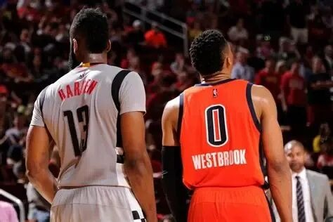 休斯顿火箭的詹姆斯·哈登,俄城雷霆的拉塞尔·威斯布鲁克。这一年,他们将以历史记录当做彼此竞逐的背景墙。